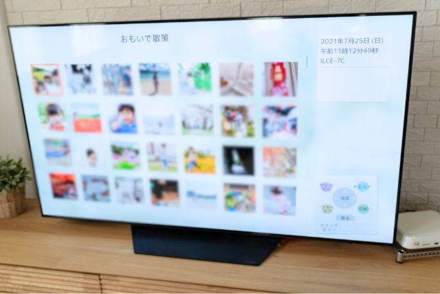 新しい機器を迎えるワクワクとともに、「やっとわが家にも簡単に写真や動画を見返せる環境が整った」と安心したのを覚えています。導入直後は、7歳の長女がリモコンを手に取り主導権を握って毎日のように見返し、3歳になりたての長男も一緒に画面に釘付け状態。家族で笑い合う時間が一気に増えました。