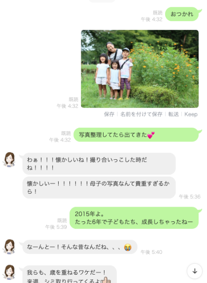 こうして写真を送った後に返ってくる、喜びのメッセージがとても嬉しいです。