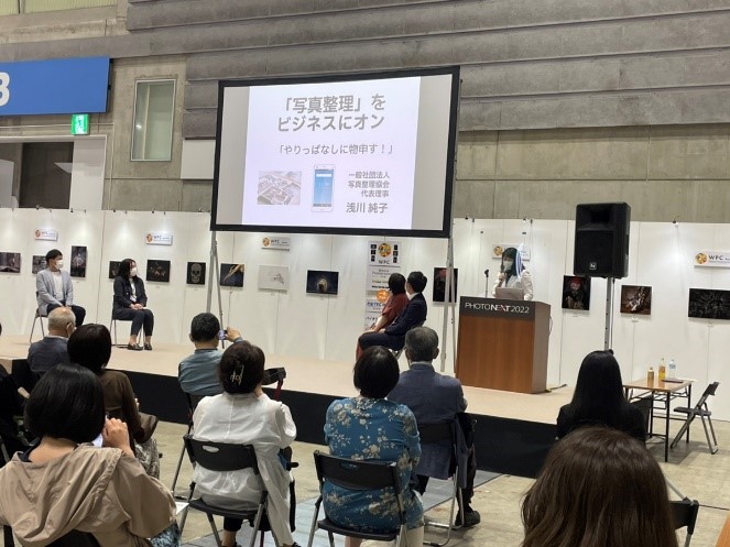 メインセミナーブースでは、写真整理協会代表理事の浅川さんなど、写真整理関連の事業やサービス展開にかかわる方々による、特別セッション『写真整理がもたらすプリント需要拡大 そのために必要な取り組みとは?!』が開催されていました。